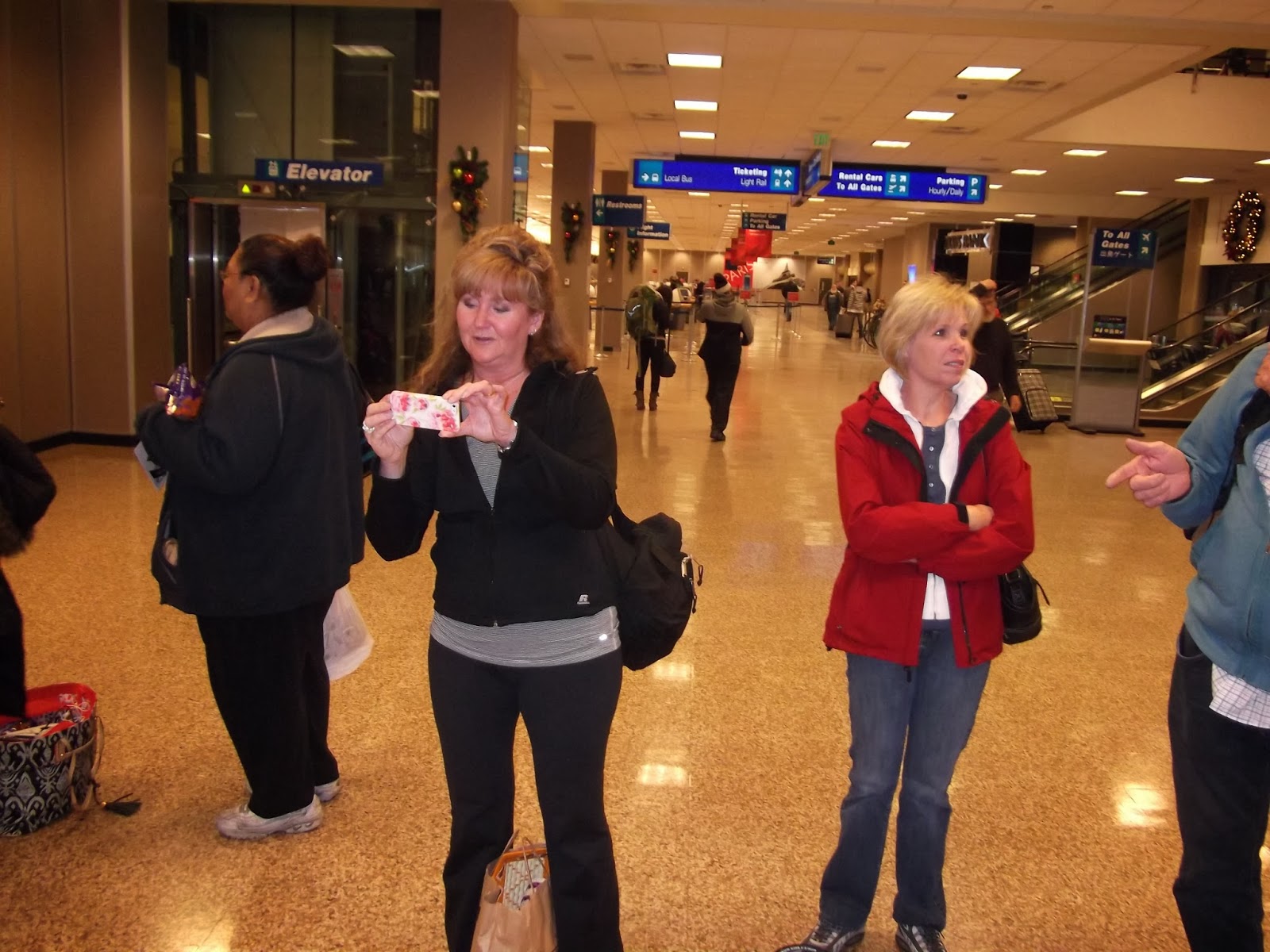 Tom had ordered up snow for his arrival back to Salt Lake City and on December 3rd, 2013, that is just what the weather delivered! Snow, freezing wind, slushy and icy roads. The whole nine yards - he was happy! We landed at SL International at about 10:45am after a grueling 24 hours of traveling. I told Dave that I don't need to go anywhere on a plane for a long, long time! I could tell Tom was a little nervous when we landed and I was very emotional. It's something that is anticipated as much or more than a farewell - at least by the moms! We made our way to the escalators and as we inched down to the first floor we could see Em, Jeff and Joan, Andy and Grandpa Bryant waiting for us! It was so, so amazing to be back home with Tom! They all gave him a big hug and then it was time to get his suitcase and head home.